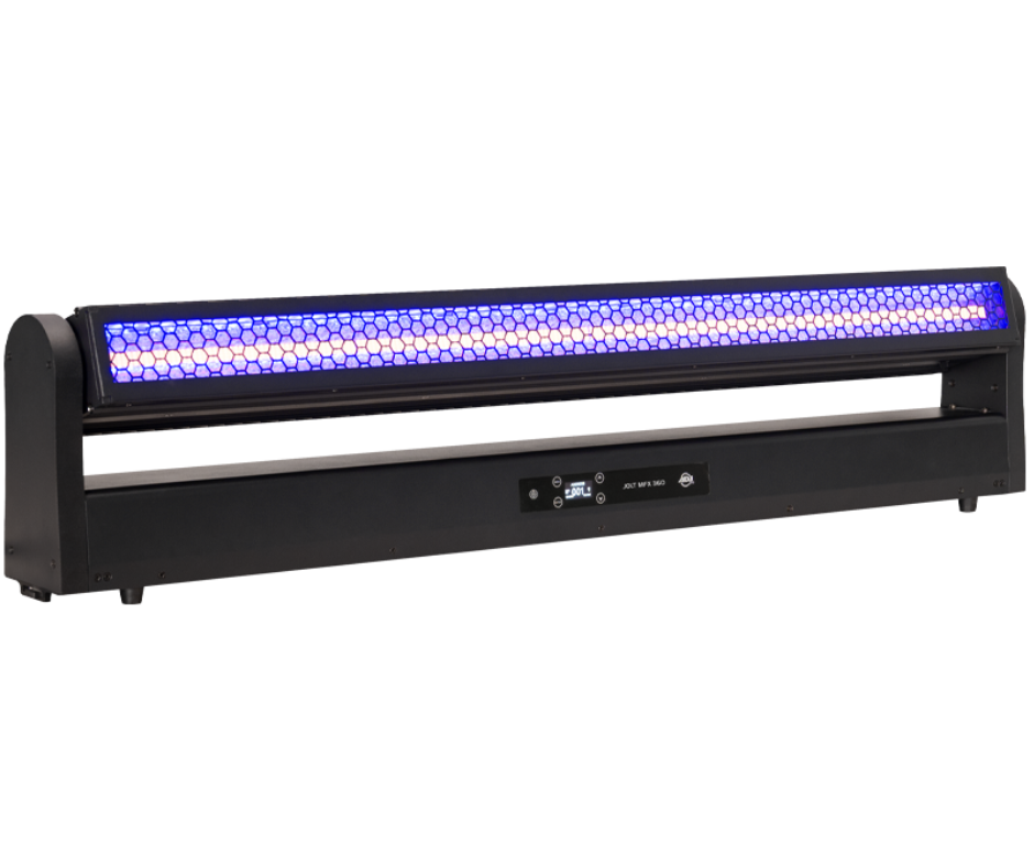 Its continuous 360° tilt movement enables creative and dynamic positioning, while pixel-mapping zones and built-in macros allow for highly customizable programming. The Jolt MFX 360 is equipped with a lens slot for frost filters, a tilt lock for stable placement, and magnetic end caps for seamless fixture alignment when used in series.