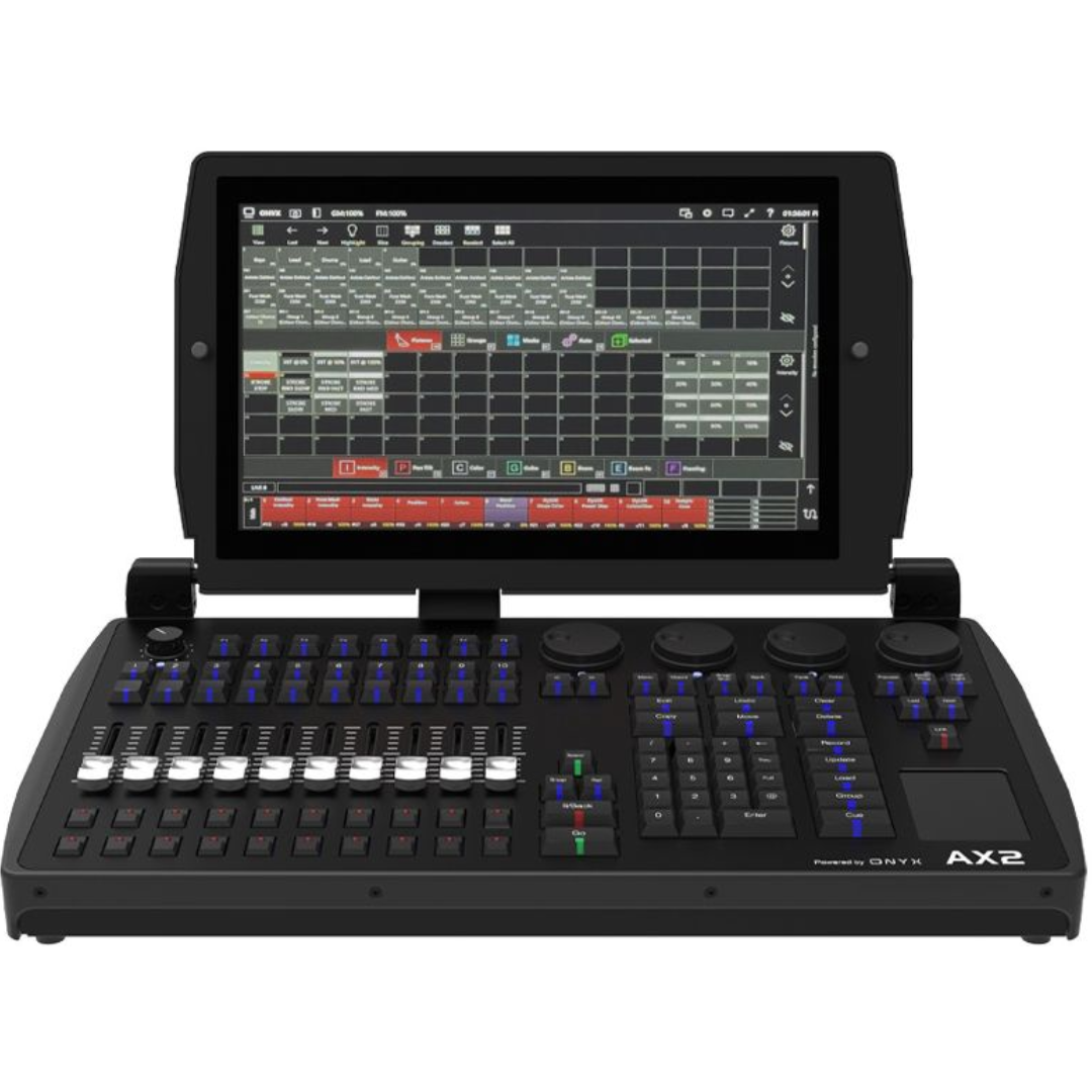 American DJ AX2 is a compact, high-performance lighting control console built for demanding professional productions. Powered by the ONYX platform from Obsidian Control Systems, the AX2 offers integrated 32-universe processing, a full tactile control surface, and advanced media engine support—all in a rugged, portable form factor.