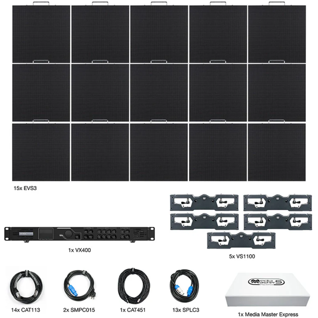 - Includes 15x EVS3 LED video panels with 3.91mm pixel pitch and 65,536 pixels/m²