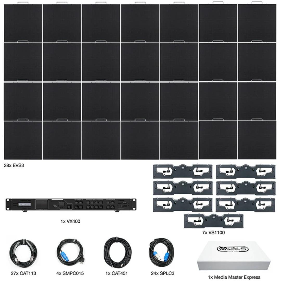 EVS3-7X4 LED wall system is engineered to meet the demands of large indoor productions, from corporate events to touring stages. Each of the 28 included