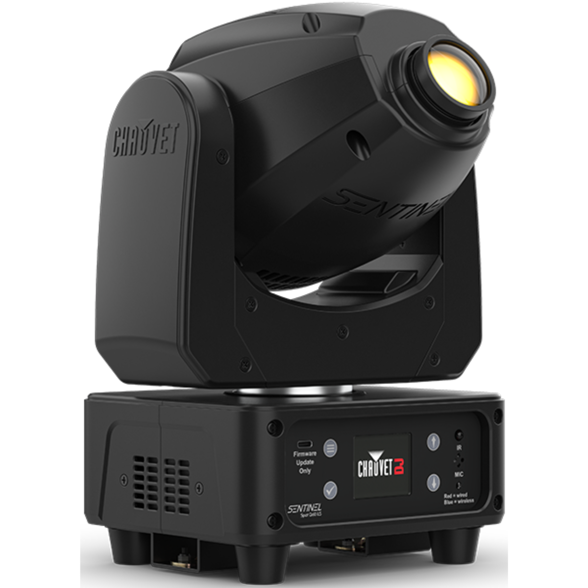 For streamlined setup and operation, the fixture features a full-color LCD display for direct access to settings and onboard functions. Built-in D-Fi makes wireless DMX or ILS communication easy, reducing cable runs and simplifying deployment, while ILS compatibility helps synchronize the Sentinel Spot Q60 ILS with other fixture types in the ILS ecosystem for coordinated light shows.