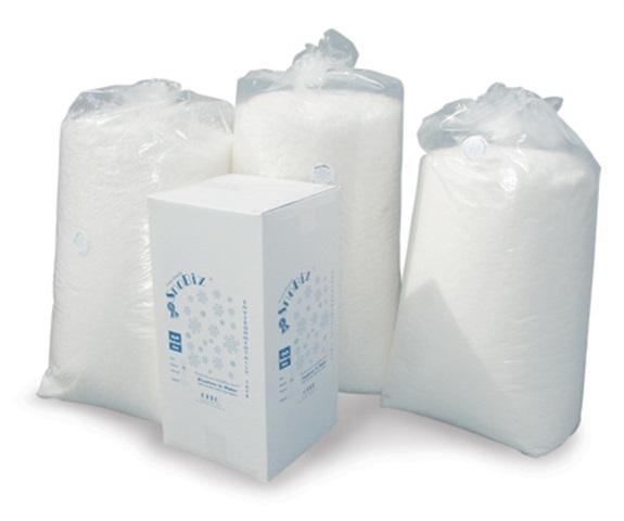 Flakes 1/4" - 1/2" (.6cm - 1.27cm). Perfect for set dressing, window sills, railings, tree branches, etc. Most cinematographers agree it looks better than the real thing! And it's less expensive than plastic snow per cubic foot! Soft puffed texture whitest available, forest friendly, no preservatives, melts away with water. All glycerides removed. Dissolves in water. Can be washed away. Safe in streams and lakes. Toxicological test done for safety.
