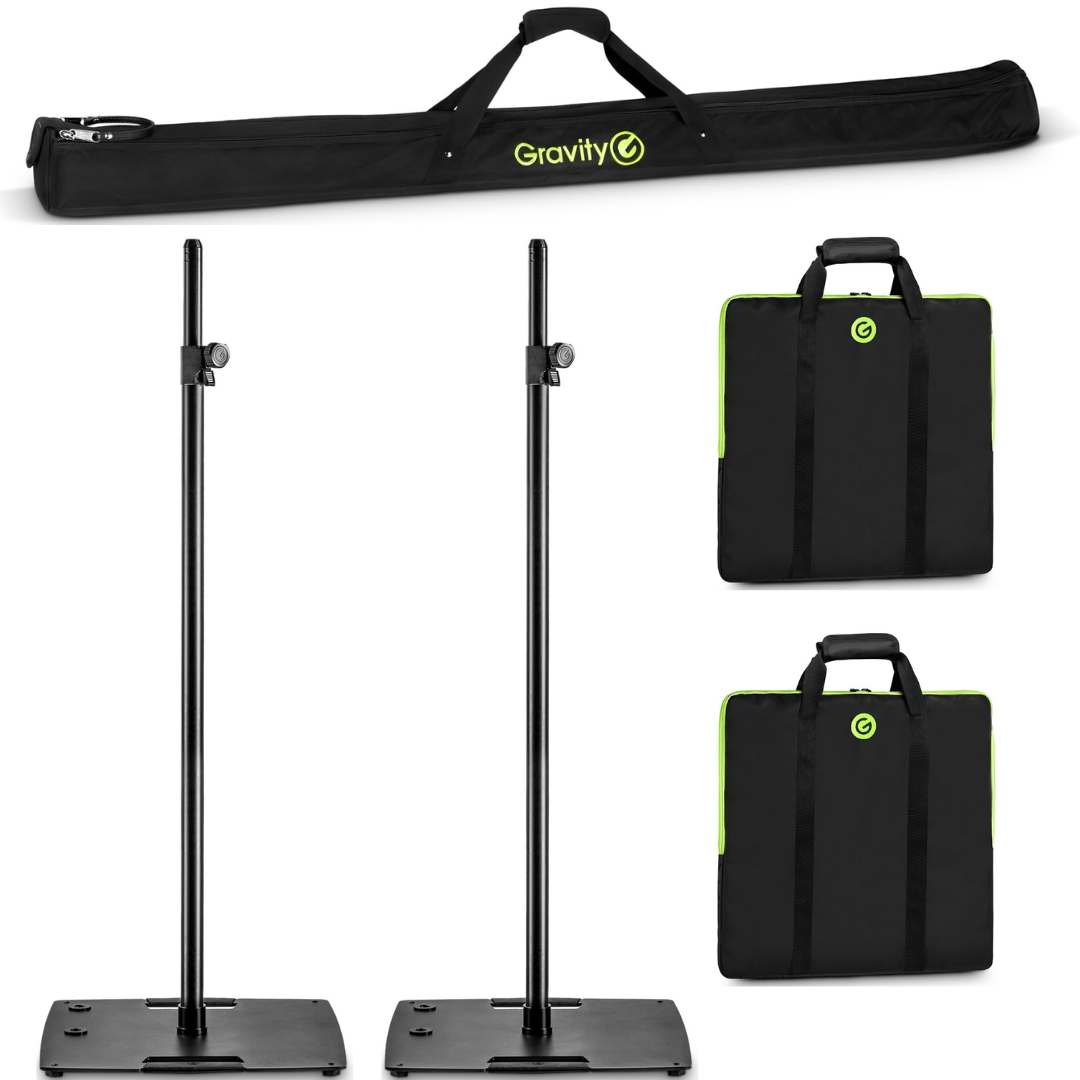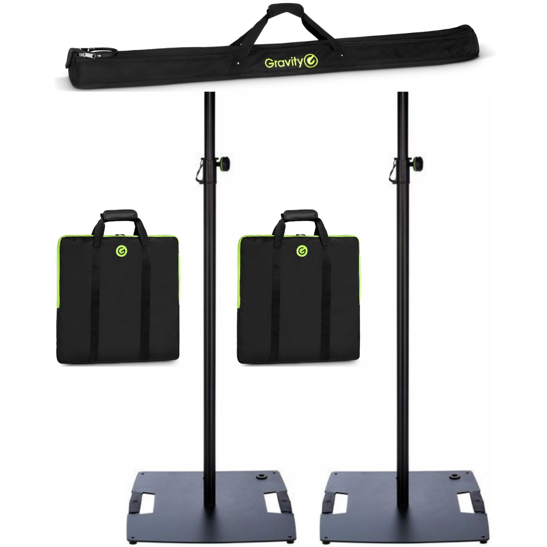 Gravity Stands LS431BT Pair w/ Bags | (2) Square Base Speaker/Lighting Stands, 7.9ft Height with Touring Base Plates and Carry Bags