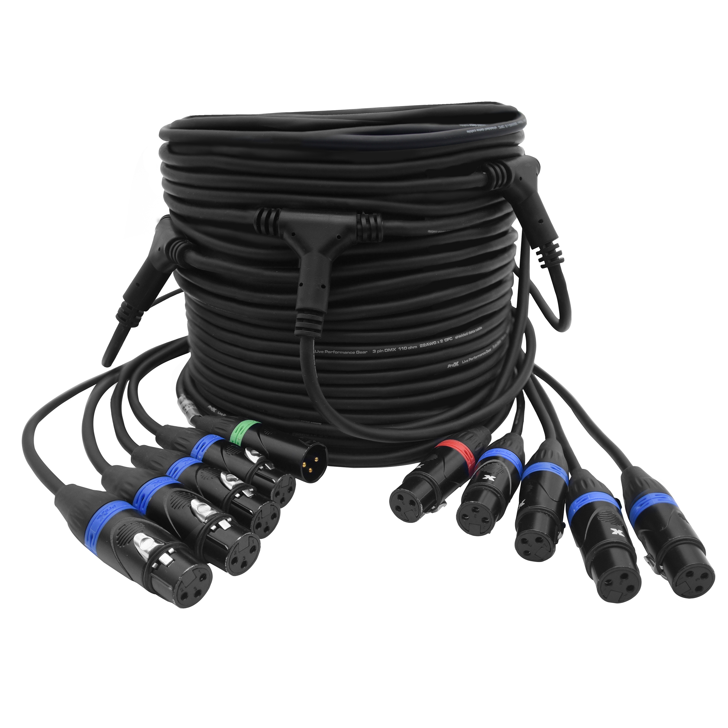 Title: ProX XC-DMX9X43FT TRAIL | 43ft 3-Pin DMX Cable – 9 Breakouts | Color-Coded for Fast Rig Setup