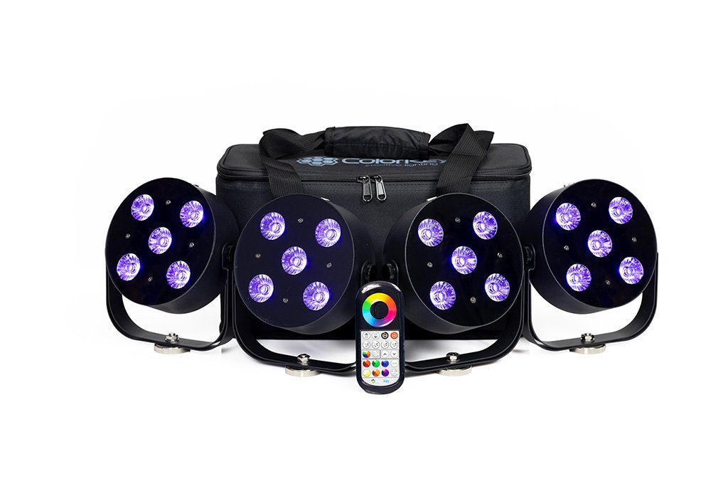 Color Key MobilePar HEX 5 | 4-Pack Wireless LED Uplights with RGBWA-UV + Carrying Case
