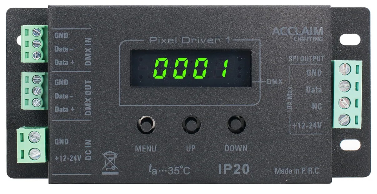 Acclaim PIX001 | Pixel Driver for 12–24VDC LED Loads | 5A Output with DMX Control