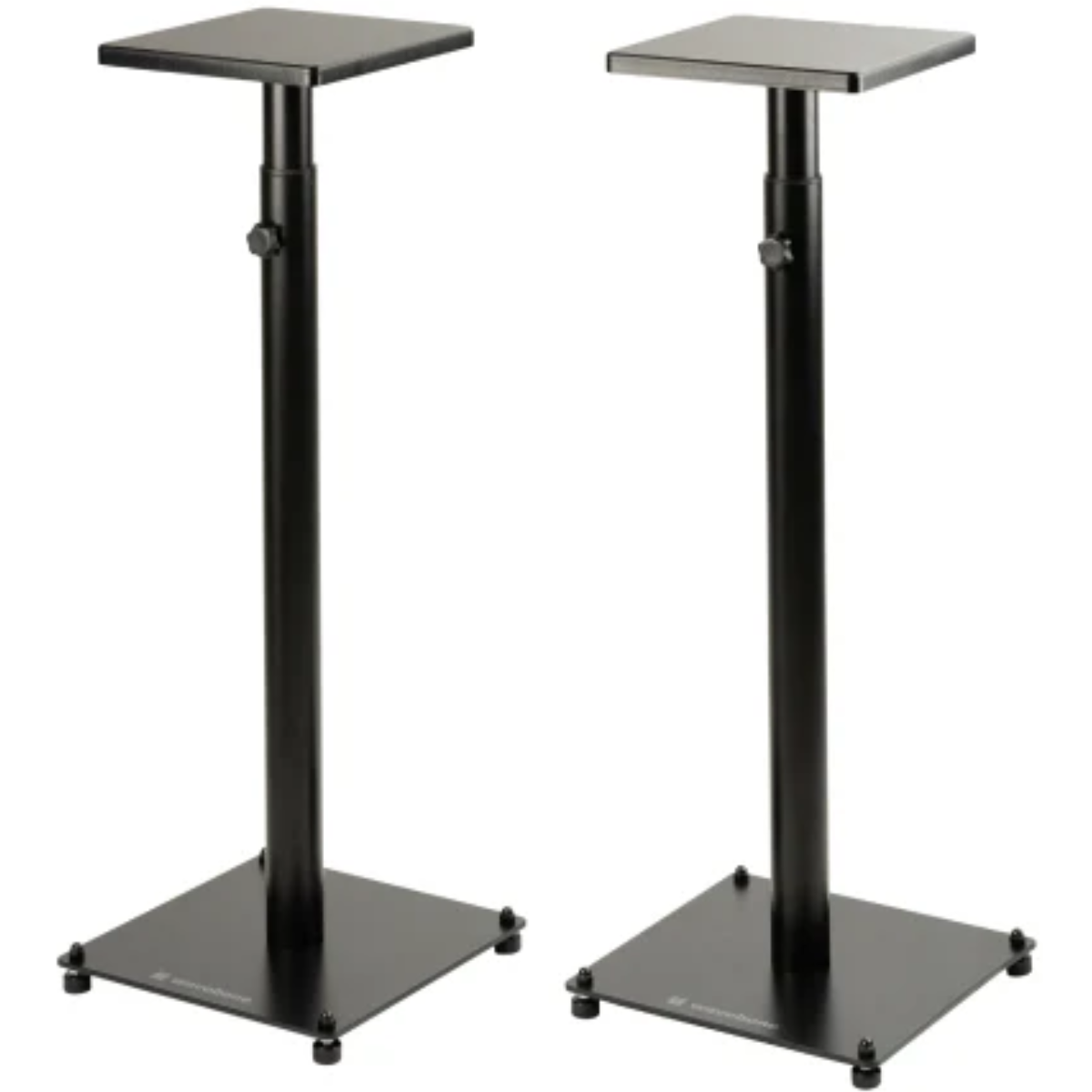 The MDF platform with splice wood surface provides a solid base for studio monitors, helping maintain a steady sound field. With a top board measuring 11.81 by 11.81 inches, the stand accommodates monitors up to 8.5 inches wide, making it suitable for many commonly used nearfield speakers.